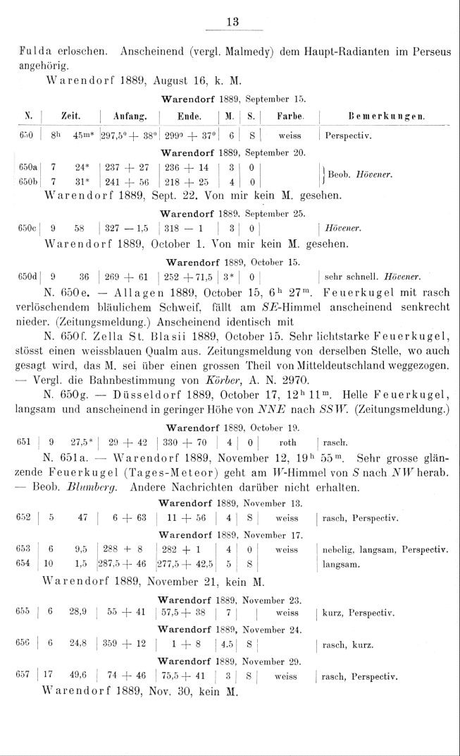 Zweites Verzeichniss von Meteorbahnen. Herausgegeben von J. Plassmann. (1891)