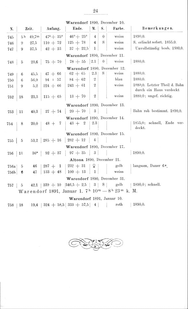 Zweites Verzeichniss von Meteorbahnen. Herausgegeben von J. Plassmann. (1891)