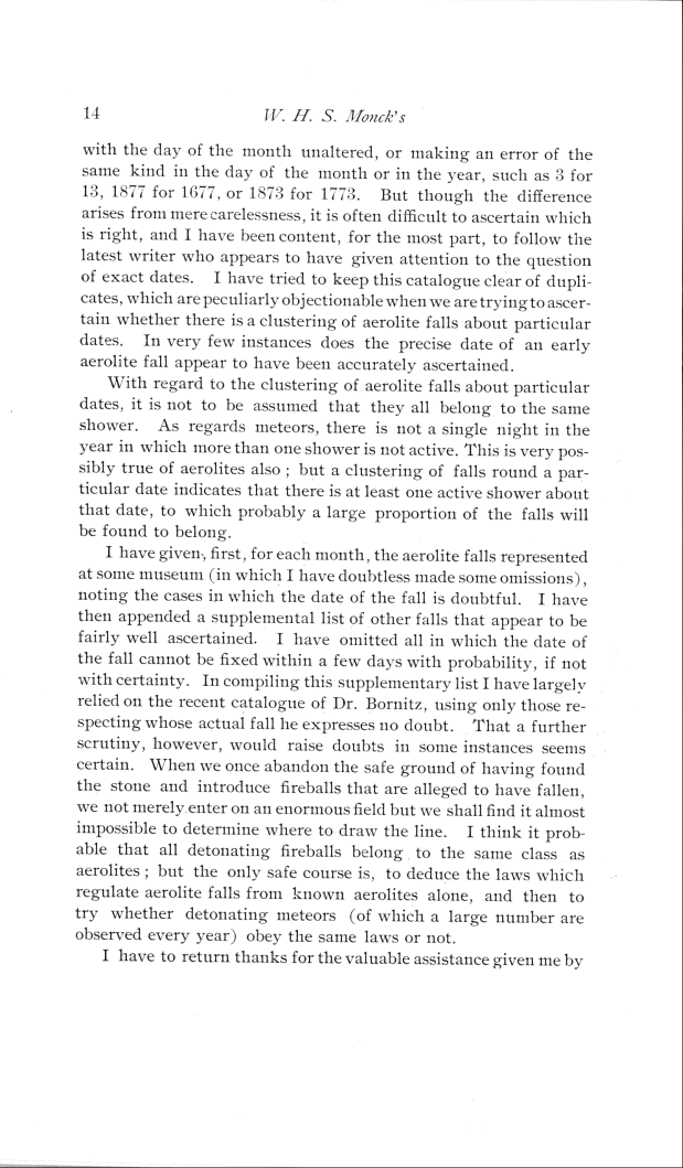 Catalogue of Aerolites to date by W. H. S. Monck, F.R.A.S. (1904)