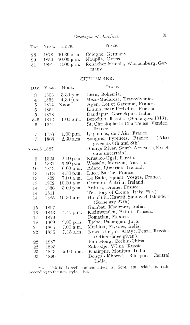 Catalogue of Aerolites to date by W. H. S. Monck, F.R.A.S. (1904)
