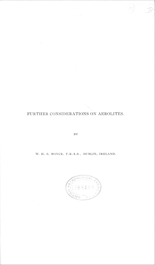 Further considerations on Aerolites by W. H. S. Monck, F.R.A.S. (1904)