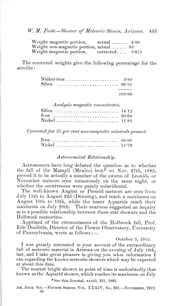 Preliminary note on the shower of meteoric stones at Aztec, near Holbrook, Navajo County, Arizona. by W. M. Foote