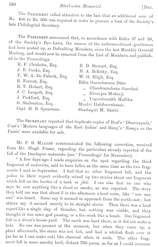 Correction received from Mr Hugh Fraser regarding the fall of the Dandapur meteorite