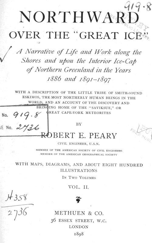 extracts from: Northward over the great ice. Vol 2. by R. E. Peary