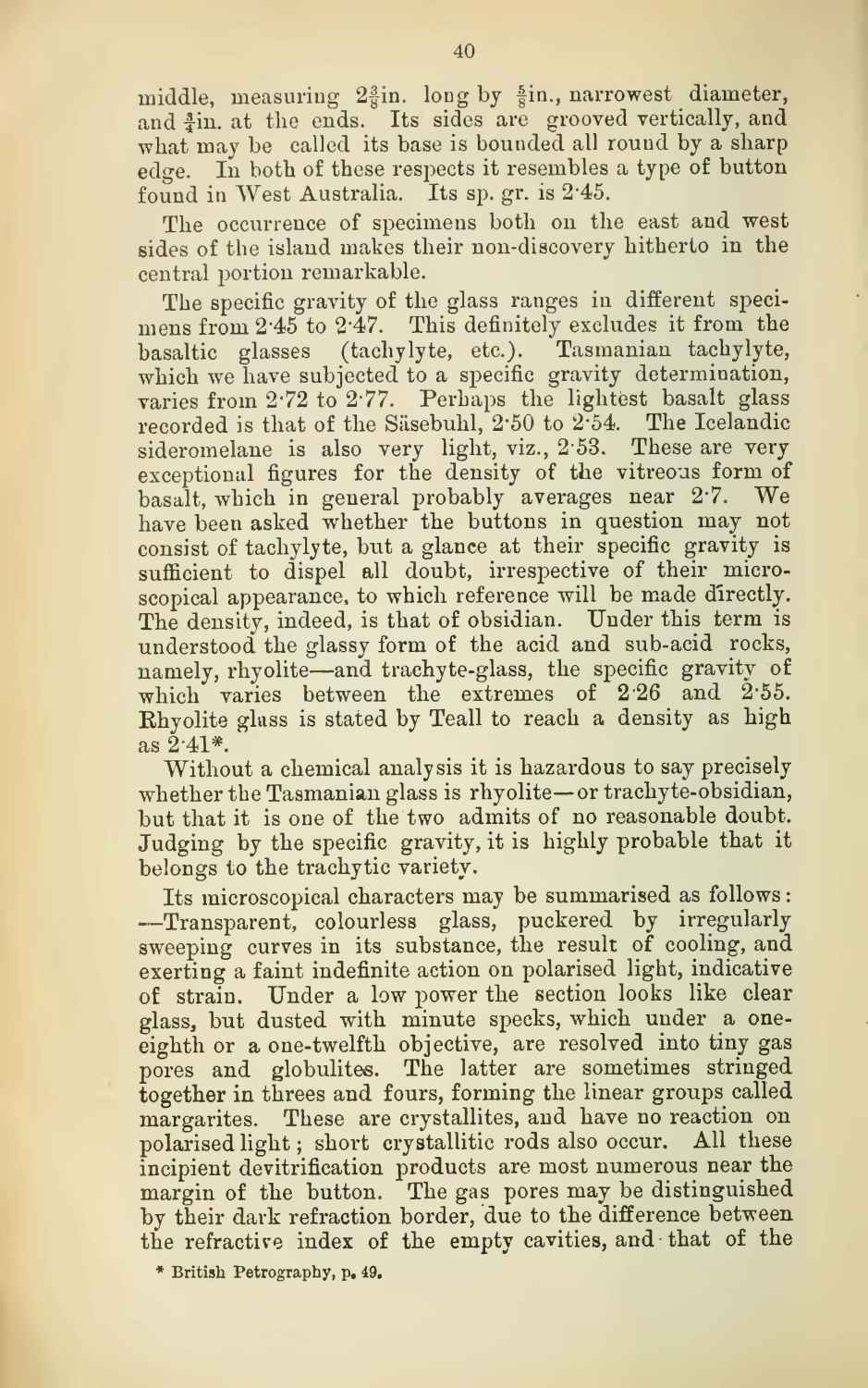 On the occurrence of Obsidian "Buttons" in Tasmania by W. H. Twelvetrees and W. F. Petterd