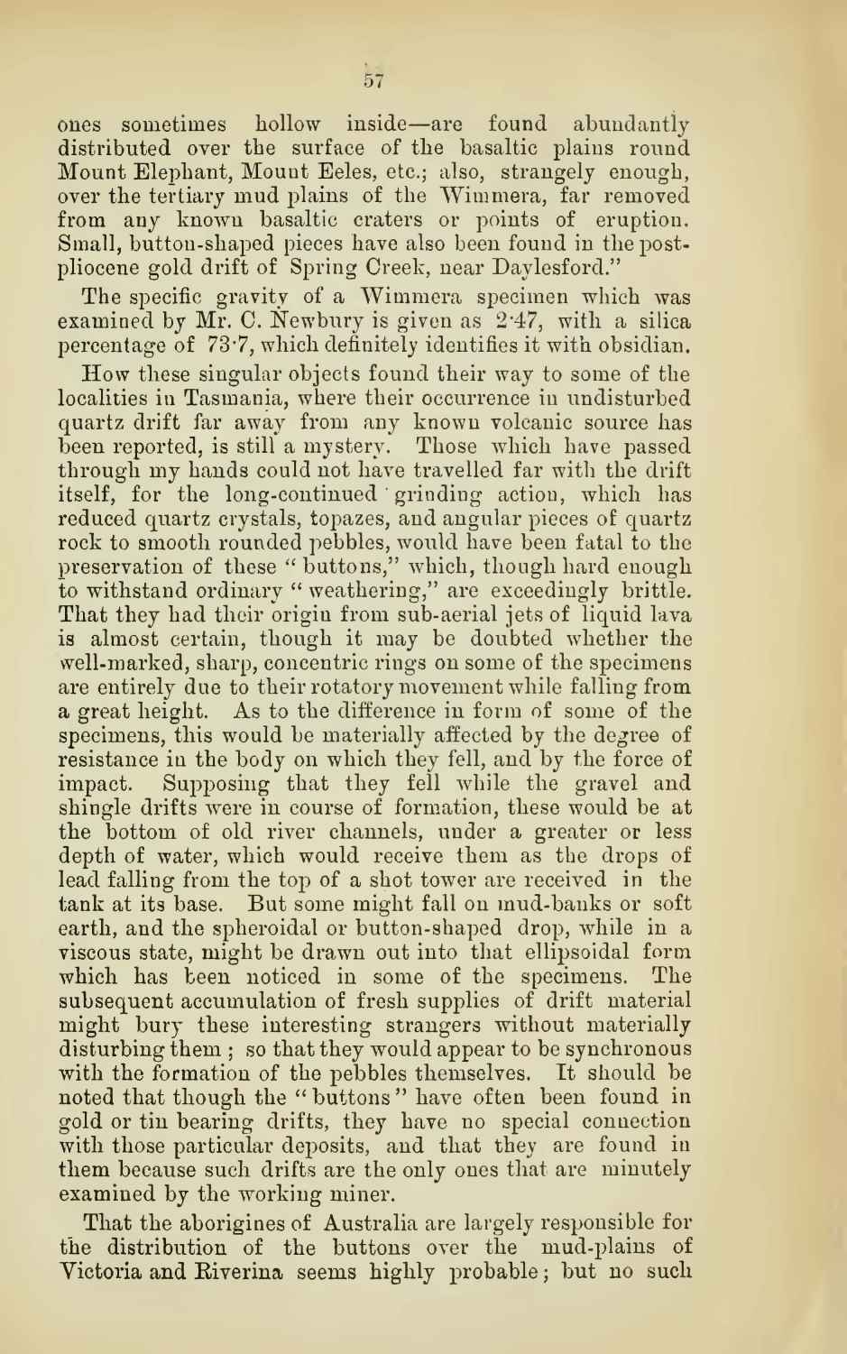 Notes on a specimen of Basalt-glass (Tachylyte) from near Macquarie Plains Tasmania, with remarks on Obsidian "Buttons" by T. Stephens