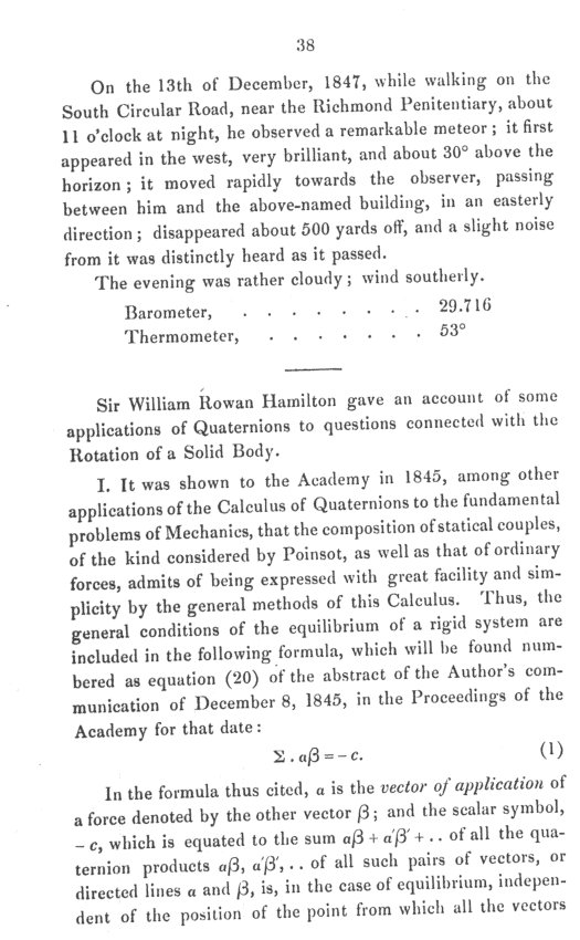 Report of a meteor, 13th December 1847