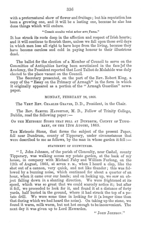 On the meteoric stone that fell at Dundrum, County of Tipperary, on the 12th August, 1864