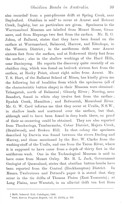 The occurance of so-called Obsidian Bombs in Australia by R. H. Walcott