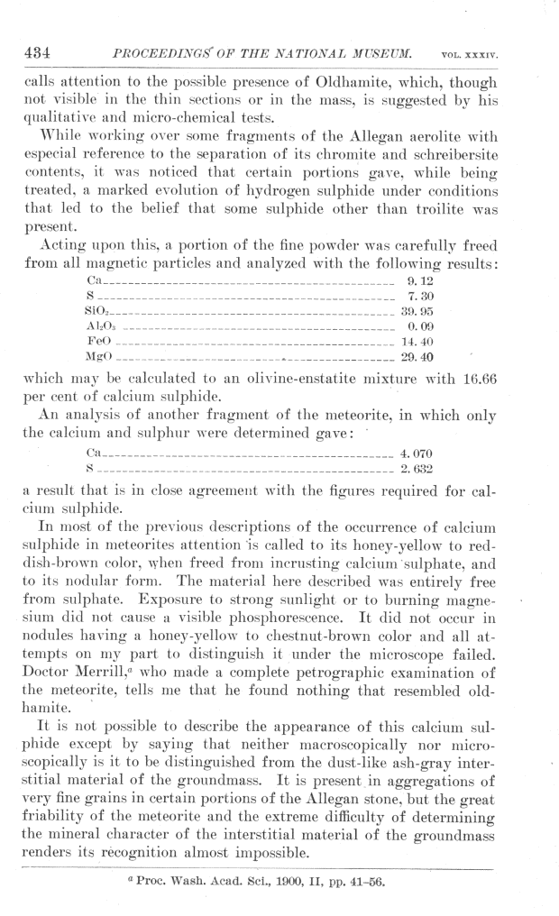 On the occurrence of calcium sulphide (old-hamite) in the allegan meteorite by Wirt Tassin