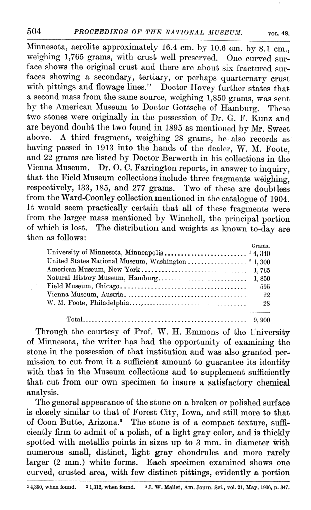 The Fisher, Polk County, Minnesota, meteorite. 1915. by George P. Merrill