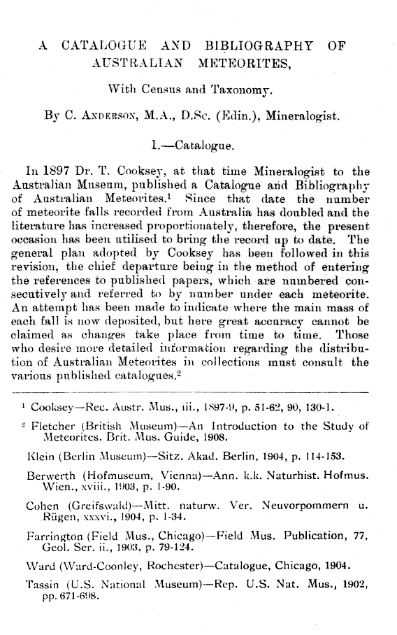 A Catalogue and Bibliography of Australian Meteorites by C. Anderson