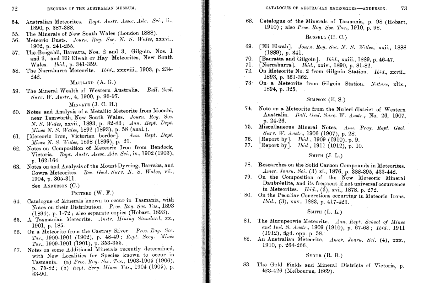 A Catalogue and Bibliography of Australian Meteorites by C. Anderson