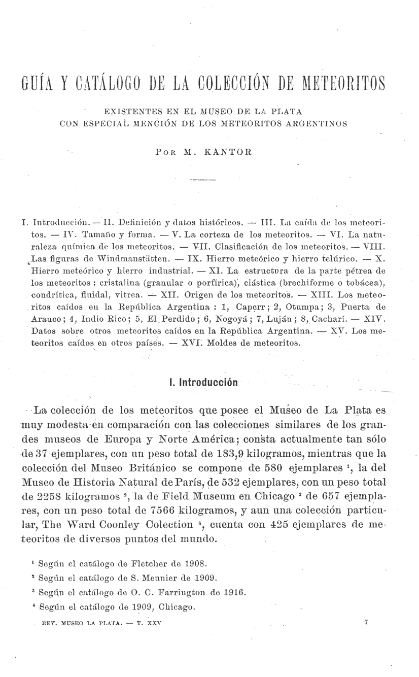 Guía y Catálogo de la Colección de Meteoritos. Por M. Kantor