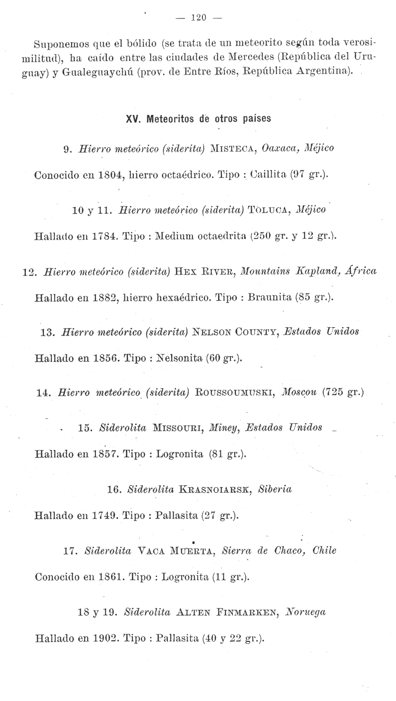 Guía y Catálogo de la Colección de Meteoritos. Por M. Kantor