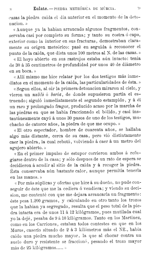Noticia sobre La Piedra Meteorica caida en termino de murcia el dia 18 de Agosto de 1870.