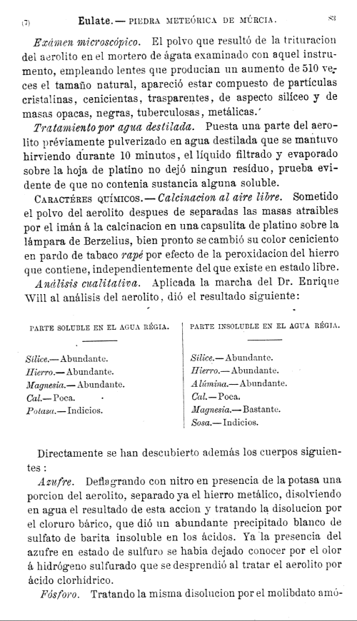 Noticia sobre La Piedra Meteorica caida en termino de murcia el dia 18 de Agosto de 1870.