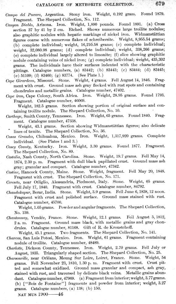 Descriptive catalogue of the meteorite collection in the United States National Museum, to January 1, 1902. by Wirt Tassin.