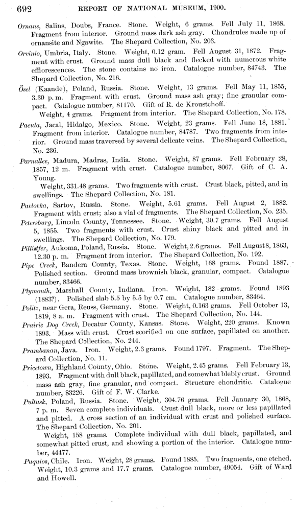 Descriptive catalogue of the meteorite collection in the United States National Museum, to January 1, 1902. by Wirt Tassin.