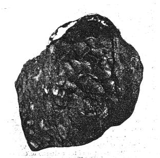 The very friable nature of the mass was such that portions could be readily broken off by the thumb and fingers, and it is to this softness of texture that its losses are due, as the weight at the time of discovery was given as more than 30 lb.