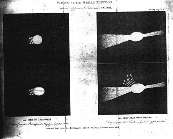 R. P. Greg in his catalogue 1860, gives an entry for 'a ball of fire seen by daylight'
