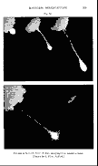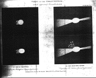 At its first appearance it seemed quite round, and well defined, except the part opposite to the direction in which it was moving, which seemed to project a little; and to terminate in a tail that extended to a small distance. On each side of this tail there were two or three smaller balls, tinged, at their extremities, with yellow and orange colours, and one or two with purple. The whole body continued to move together without any sensible distance in either colour or shape, till within about a second of its disappearance, when it suddenly altered its figure to something like the shape of an egg. At this moment its light became so intense, that it was with difficulty that the eye could bear to look at it. It seemed at this instant as if the meteor had before been covered with one external coat, which now burst, and exposed a surface of brightness far surpassing its former lusture.