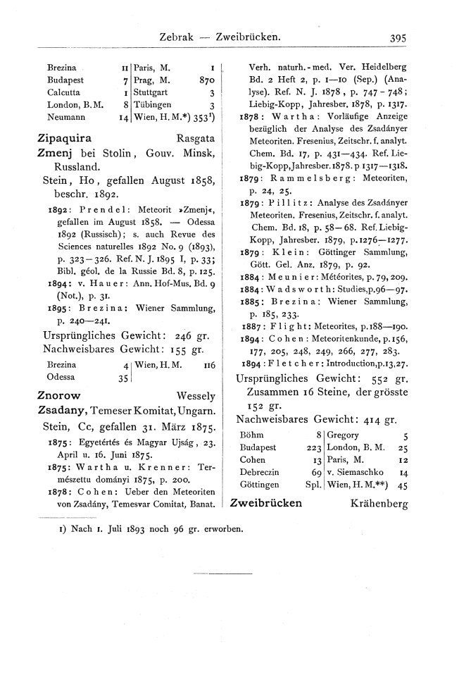Verzeichnis der Meteoriten in alphabetischer Reihenfolge