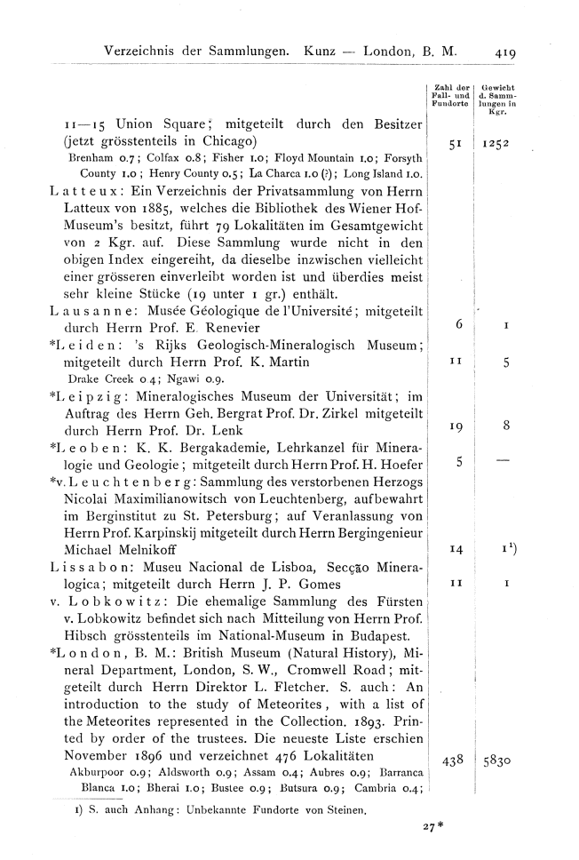 Verzeichnis der Sammlungen