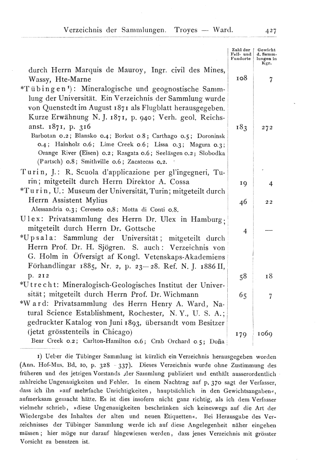 Verzeichnis der Sammlungen