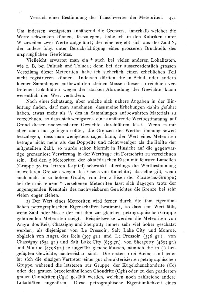 Versuch einer Bestimmung des Tauschwertes der Meteoriten