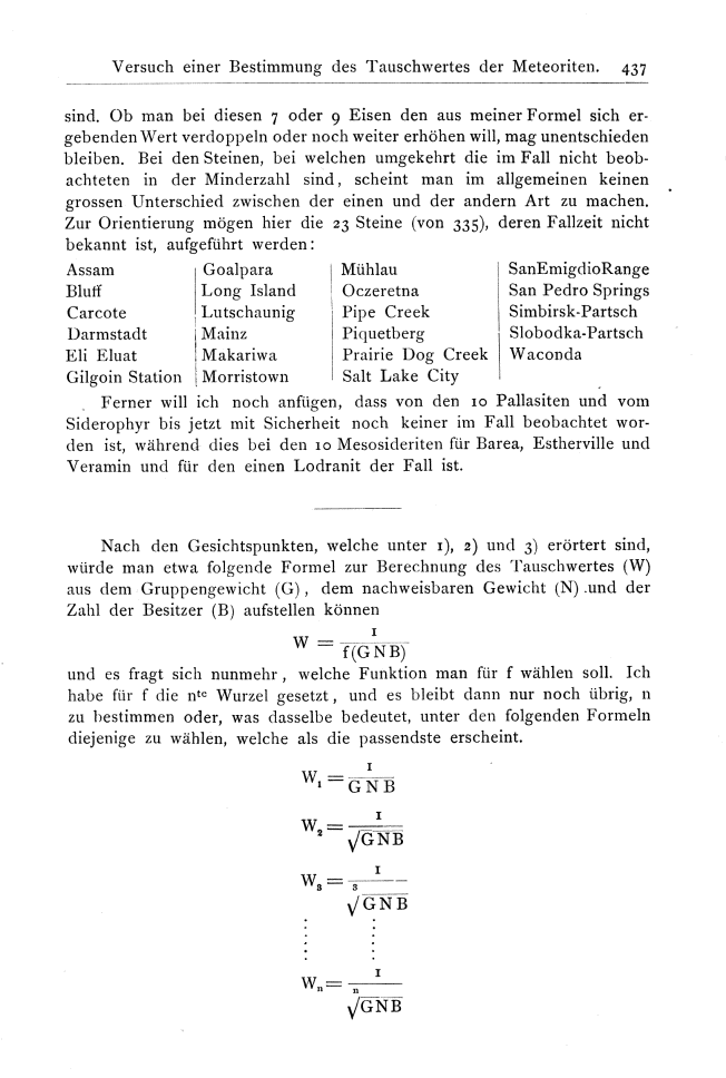 Versuch einer Bestimmung des Tauschwertes der Meteoriten